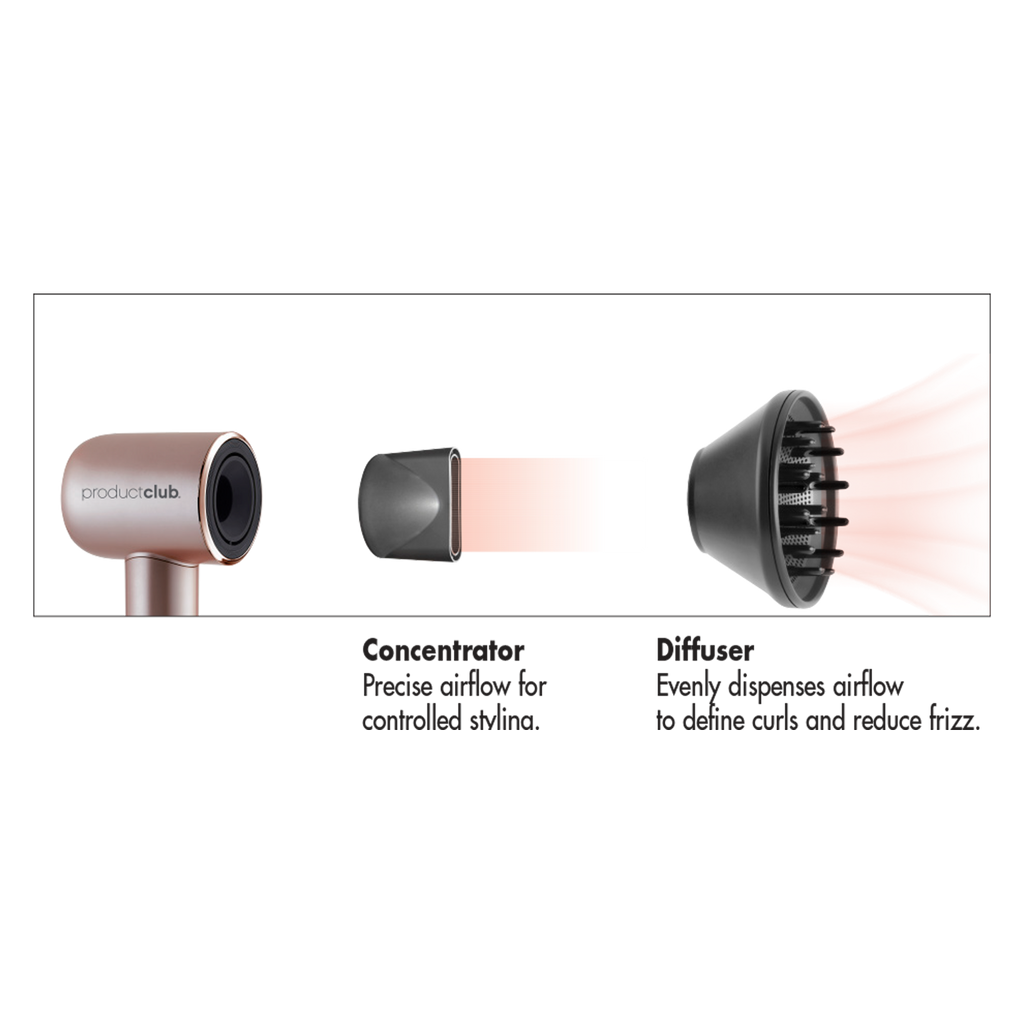 - Brushless Motor with 110,000 RPM quickly dries hair